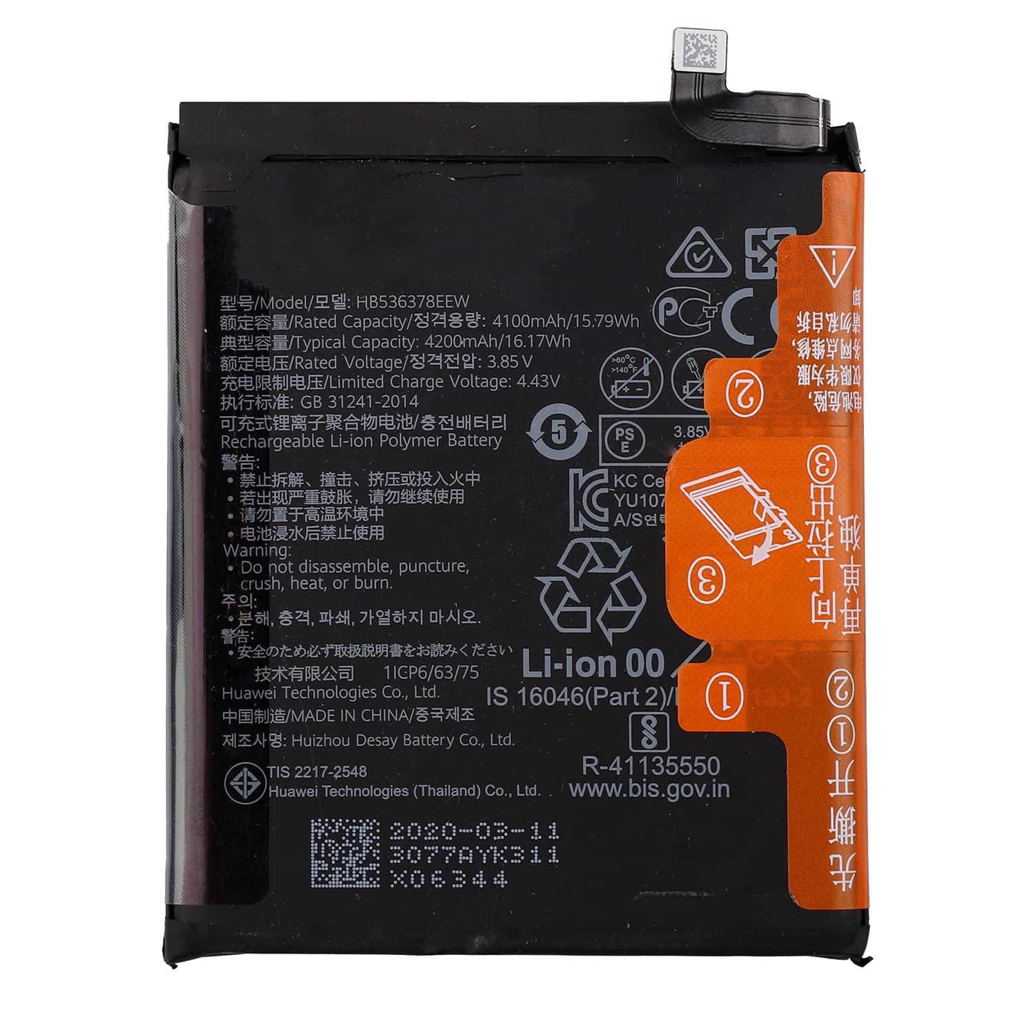 Аккумулятор для Huawei HB536378EEW P40 Pro с емкостью 4100mAh обеспечивает надежную работу вашего устройства на протяжении длительного времени. Он предназначен для замены изношенного элемента питания, что позволяет вам не беспокоиться о разрядке во время важных дел. Необходимый аксессуар для сохранения производительности вашего смарт-гаджета.